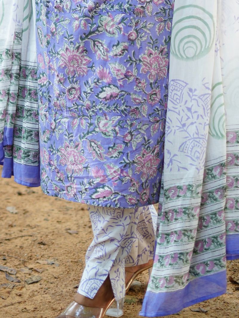 Jaipur Handblock Cotton 3-Piece Suit Set | Straight Kurta + Pant + Dupatta