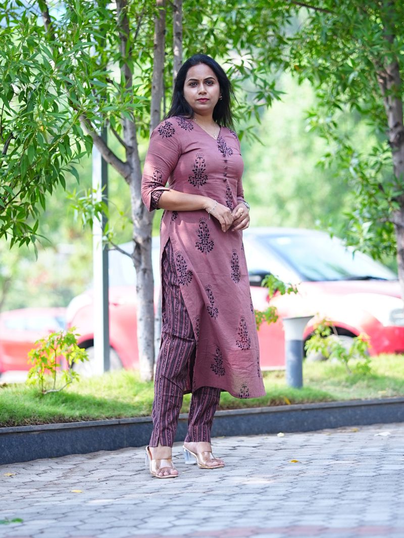 SJ-20 is crafted in naturally dyed pure cotton designed for effortless everyday comfort. The V-neck top with piping finish adds refined detail. Signature sleeve patch detailing and side slits enhance both movement and styling. Paired with a stitched cotton pant, this co-ord offers balanced structure. Ideal for office wear and long workdays, SJ-20 blends functionality with thoughtful tailoring.