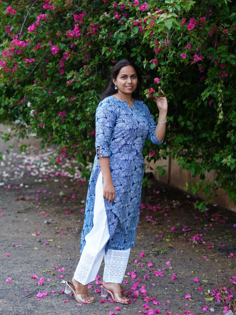Jaipur Indigo Handblock Cotton Kurti | Straight Cut